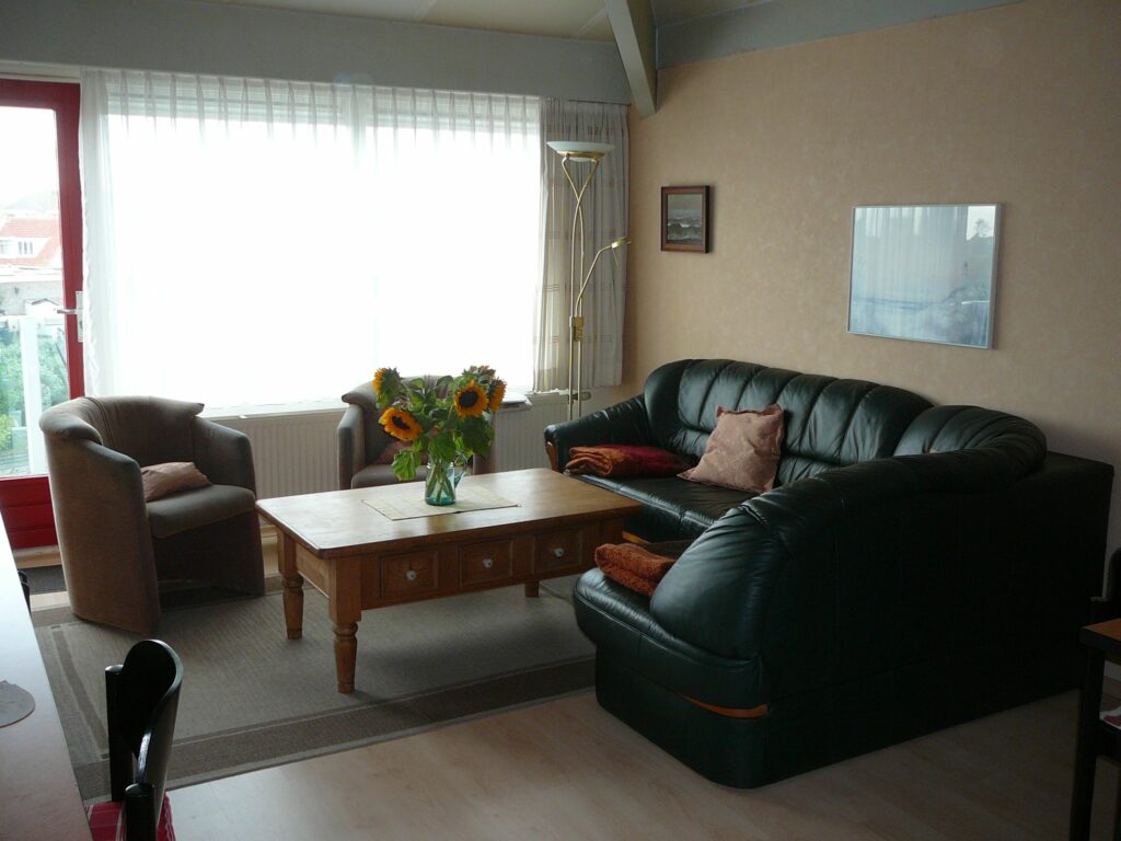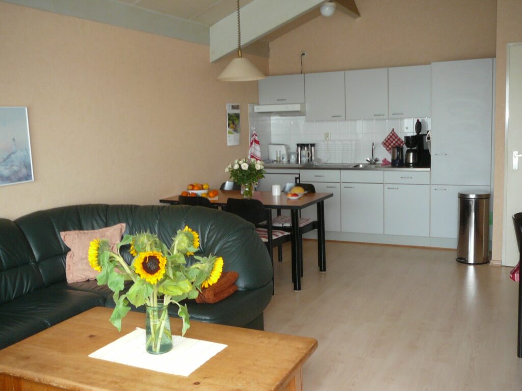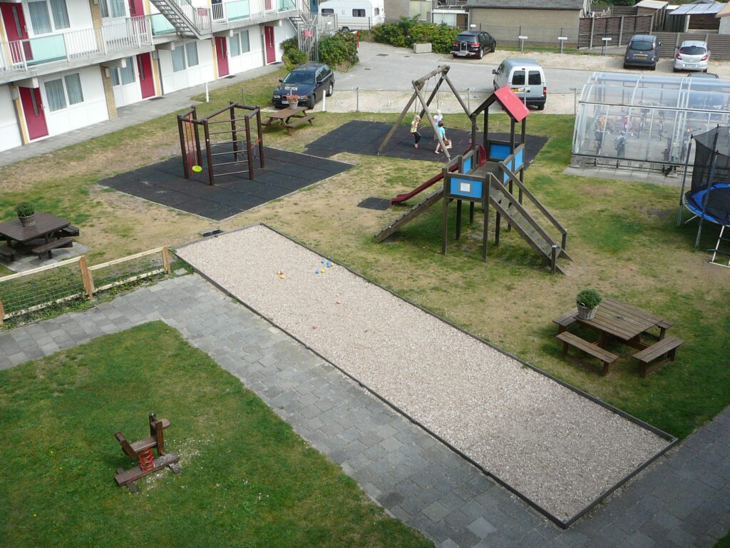 Dies ist die Appartementanlage in Callantsoog, der Pfeil zeigt auf das Beachappartement 42Blick vom Balkon nach Westen zur Dünenreihe, direkt dahinter liegt das Meer